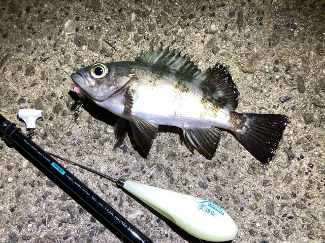 ダメ元で投げ続けると、20分くらいしたらチビメバルが1匹釣れました。